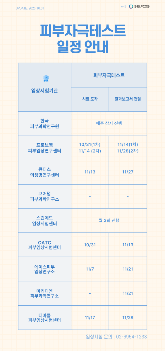 임상시험기관 피부자극테스트 일정 (25년 11월)